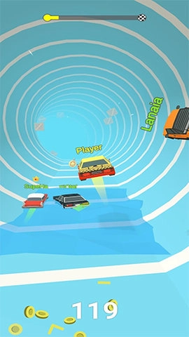 操作简便易上手:只需点击屏幕就能操控赛车转向,避开障碍物,尽量收集道具来加速前进。