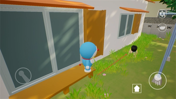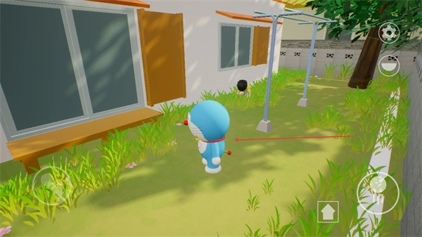 1、操控哆啦A梦在庭院移动,靠近目标角色,推进互动流程。