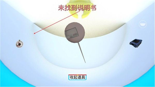 3、使用道具查看区域,显示未找到说明书,点击收起道具关闭界面。