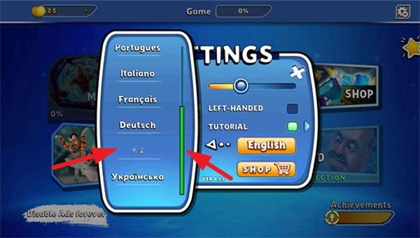 3、快速往下面滑动,就能找到中文,选择好直接切换即可。
