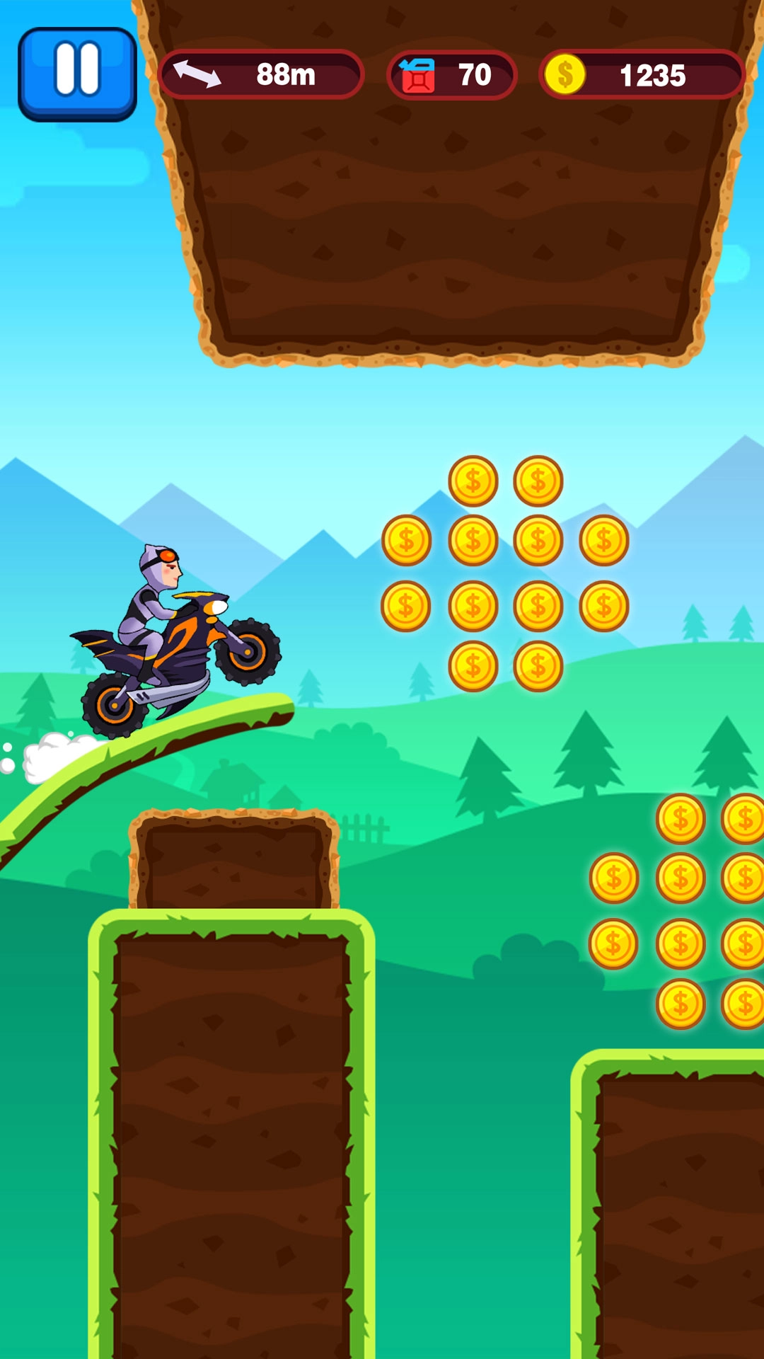 1、玩家可以带着你的摩托车去冒险,享受美妙的音乐,去体验令人上瘾的挑战。