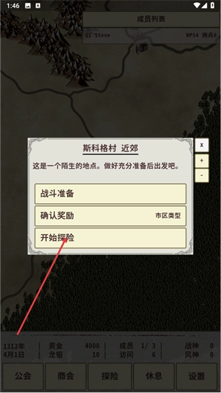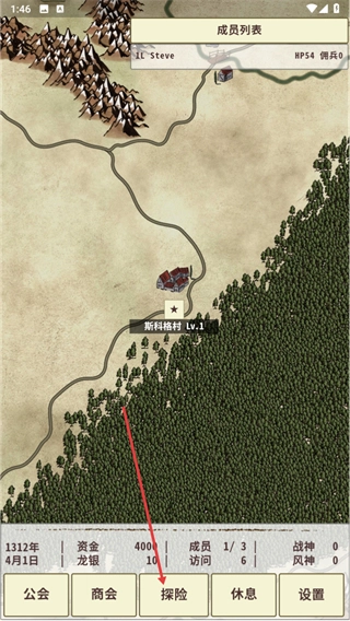 1、打开世界地图界面后,点击底部的探险按钮,就能开启斯科格村的相关探索流程。