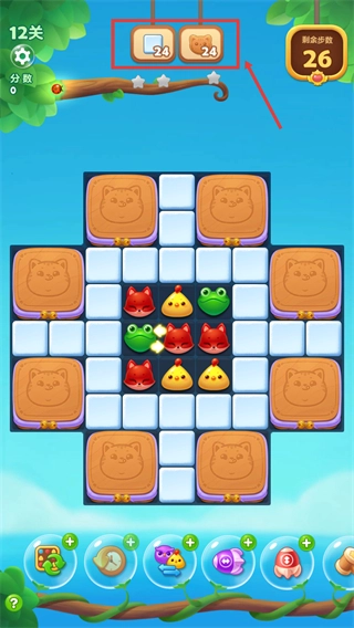 3、当剩余步数逐渐减少时,可借助特效元素来加速消除进程,同时要留意目标的剩余数量,争取在步数耗尽之前完成收集任务,从而提升分数。