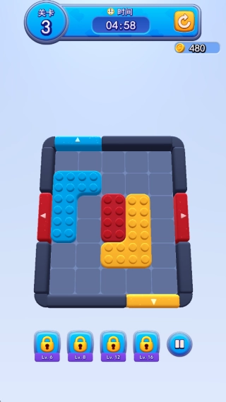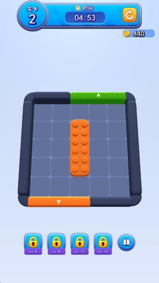 1、开局不要急于移动。首先观察整个棋盘布局:所有颜色出口的位置、可移动方块的分布以及障碍物情况。 2、高级技巧在于“制造连锁”。通过一次移动,不仅让当前方块抵达出口,还能让上方的方块掉落并自动形成新的“方块-出口”连接。 3、面对被锁链或冰块封锁的方块,需要有策略地优先处理。例如,先移动其相邻方块进行解冻。
