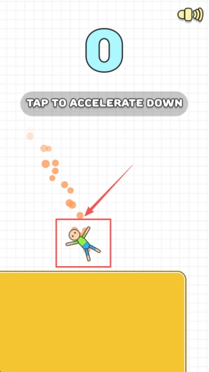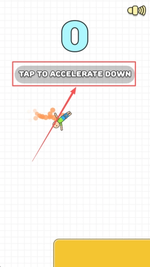 2、开始坠落:屏幕显示“0 TAP TO ACCELERATEDOWN”,连续点击让人偶加速下落。