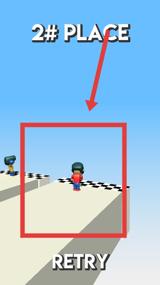 持续进行跑酷运动,直至抵达黑白格子样式的终点线。若最终获得第二名,界面会显示相应排名,此时可选择重新挑战以争取更优异的名次。