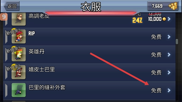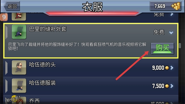 4、遇到需要解锁的免费服饰,点击右侧购买按钮。