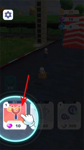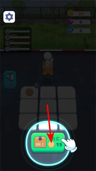 4、回到关卡准备界面后,点击红色箭头所指的购买按钮,花费15金币来获得新道具,为下一轮的关卡挑战做好准备。