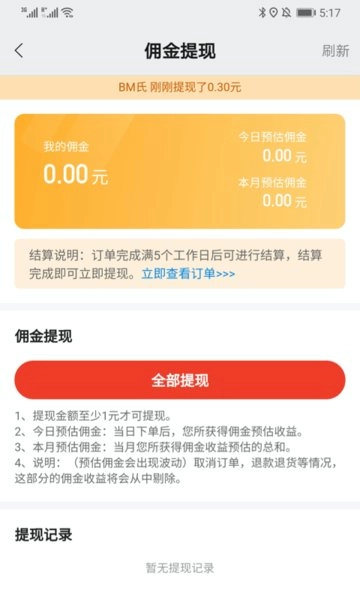 佣金提现更便捷,能够收益看得见,到账速度快;