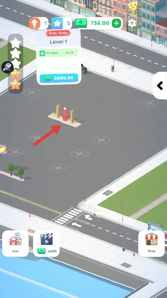 1、在空地上点击带有“+”号的标识,消耗货币来建造加油站相关设施。