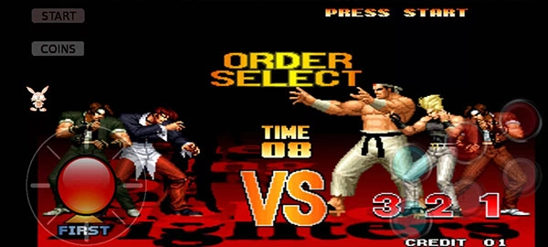 首先下载安装本站提供的拳皇97屠蛇版手机版,投币,确认开始游戏,选择我们喜欢的英雄