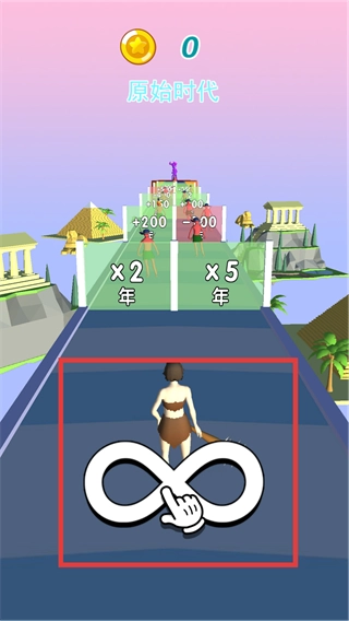 从原始时代到现代文明,乃至未来的机甲时代,以人类进化为主题的休闲跑酷小游戏。控制人物移动,在赛道上通过增加对应年限使人类从石器时代不断的进化到到机甲时代,最后通过进化的时代程度而获得不同的奖励。注意可以通过撞击赛道上的人物获得额外的的金币奖励!