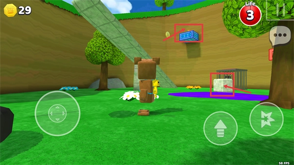 3、操控角色推动【石块】至滑梯,利用滑梯移动靠近高处的【蓝色箱子】,获取其中物品以助力救援。