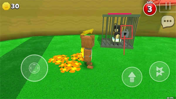 4、靠近笼旁的【锁】装置完成互动,解救笼内的小熊,逐步推进【0/3】的救援进度目标。