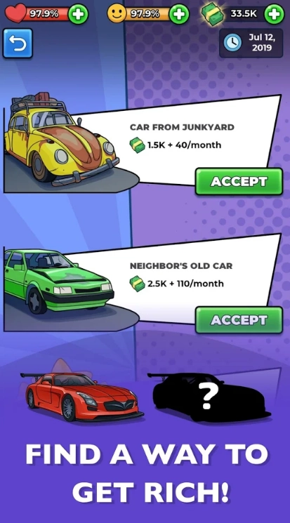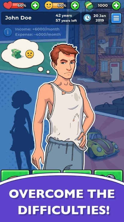 这部作品的内容十分贴近现实,你需要在其中记录个人的成功经历,完成所有设定目标并找到第一份工作。起初要为事业发展积攒资金,通过持续努力赚取人生第一桶金,玩家可以借助游戏体验自己积累到一百万美元所需的时长。
