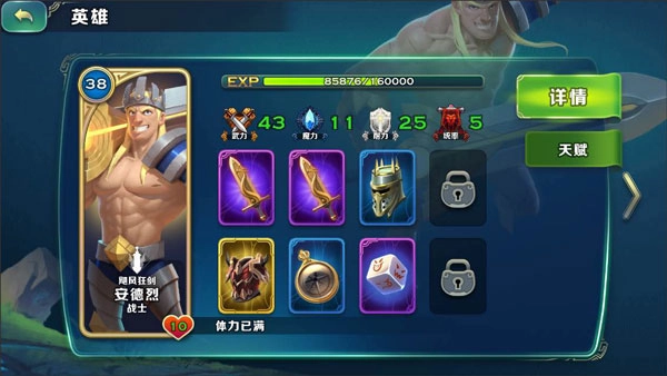 安德烈,人称“毁灭之子”,满级后能达到3.6倍伤害。搭配主动技能“应用跳跃”与被动“剑气斩”,一轮范围攻击足以对敌方后排脆皮造成毁灭性打击;再加上“快速愈合”这种坦克专属的天赋,只要敌方后排进入跳跃范围就直接突进。战士角色向来是土豪玩家的选择,把所有天赋点、属性点和装备资源都倾注在他身上,绝对能培养成BOSS级别的强力英雄。