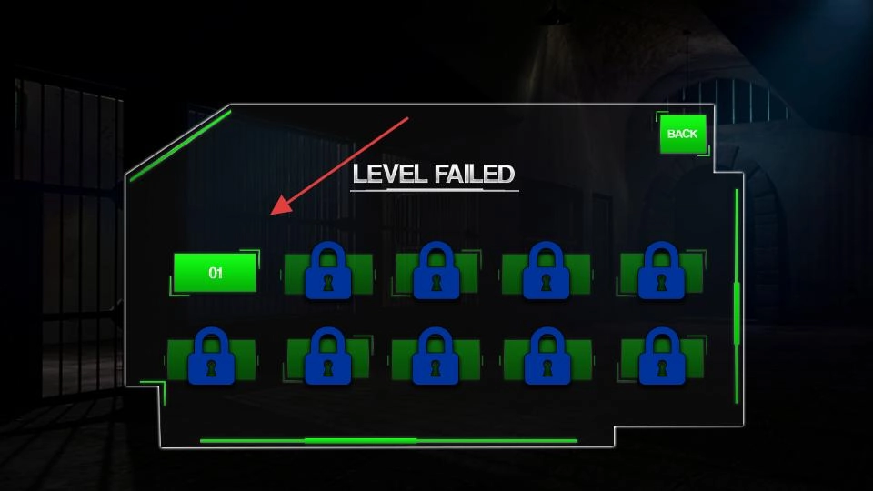 “LEVELFAILED”意味着关卡挑战失败,当前只有第一关处于解锁状态,其余关卡都处于锁定状态,玩家需要重新挑战第一关并成功通过,才能够解锁后续的关卡。