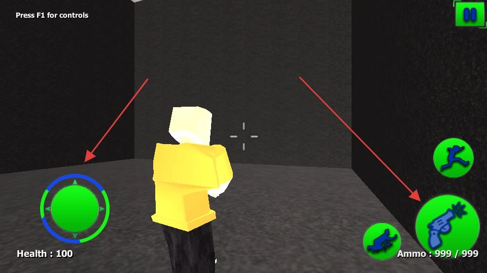 游戏界面左下角有个绿色的圆形按钮,它的功能是控制角色的移动方向;右下角那个带有手枪图案的按钮,点击后就能让角色执行射击动作。