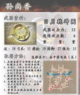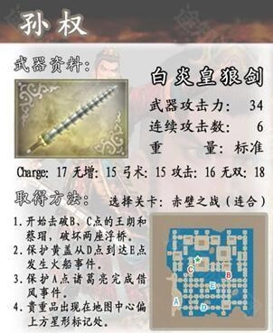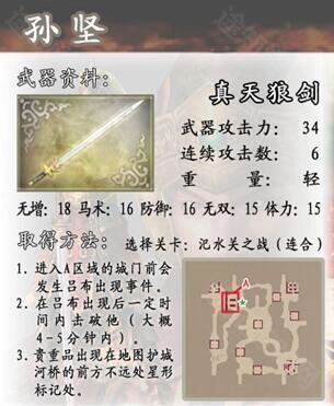 攻略:这关虽然难度不大,不过比较的麻烦,玩家先要引发断桥事件,然后完成救援孙权,并且将敌方11名武将全部消灭才能够发现武器。