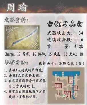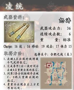 攻略:这关难度比较低,开始直接追击蔡瑁并且击杀,然后击破甘宁就可以发现武器了,需要注意的是甘宁可能会被凌统打退,需要优先赶在他之前。