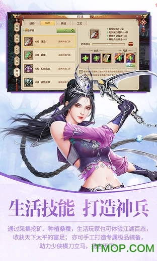 生活玩家既能通过挖矿采集、桑蚕种植,体验江湖间的种种风貌,收获天下太平时的富足安乐;也能亲手打造出专属的极品装备,助力少侠们驰骋江湖、扬名立万。