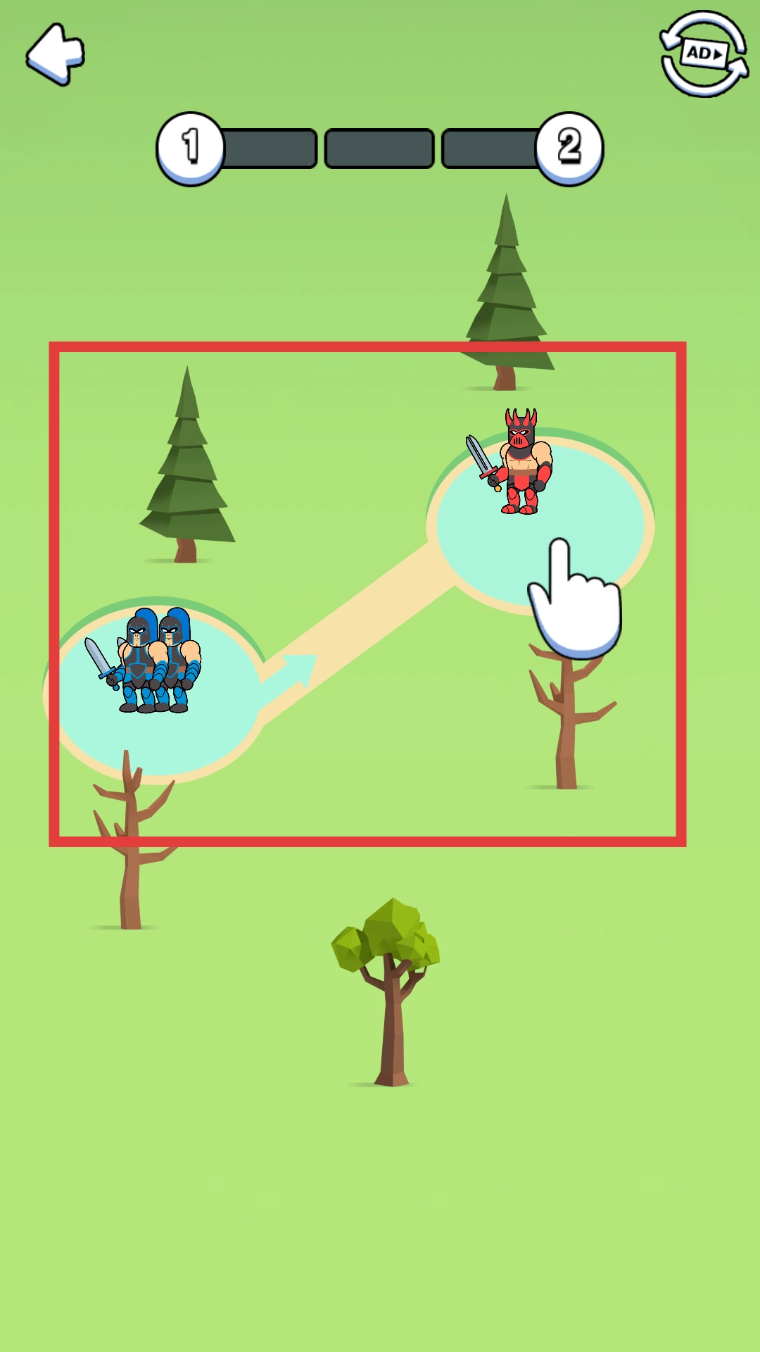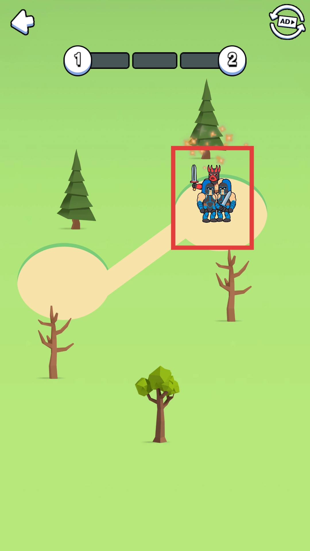 进入游戏关卡界面后,界面中间会出现相连的路径,根据提示,把蓝色战士从初始位置拖动到红色恶魔所在的位置,这样就能让蓝色战士朝着红色恶魔移动。