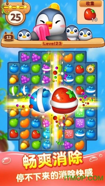 传统的三消玩法延续经典,绚丽的消除动画特效十分解压。