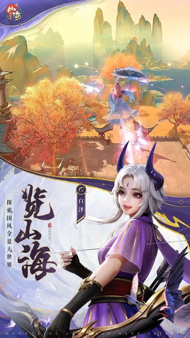 1.国风山海背景:以《山海经》为故事模板,游戏内角色和场景设计充满东方古韵美学。