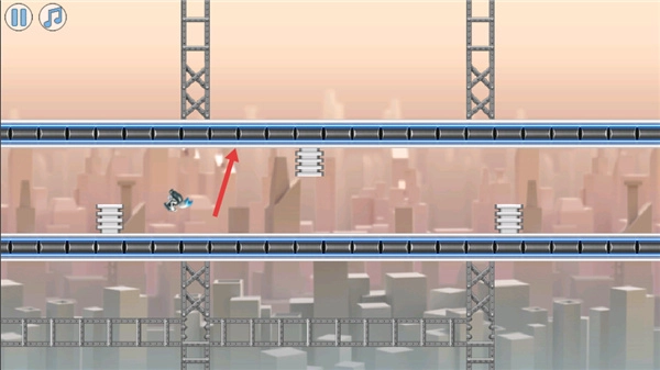 2、进入到场景中,玩法非常的简单只需要通过滑动屏幕即可进行操作,看到障碍物的时候只需要向上滑动屏幕来进行躲避就可以了;