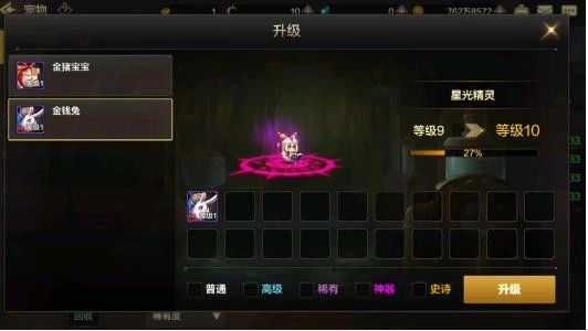 宠物有五个品质:普通、高级、稀有、神器、史诗,宠物升级的难度会随着宠物的品质变高,史诗品质的宠物升级难度最高,宠物升级的难度也会随着宠物的等级越来越高而越来越难。
