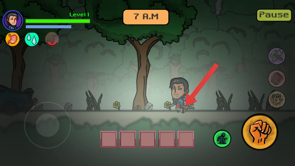 进入游戏后,你会看到右侧有个橙色的拳头图标,这就是攻击键啦。接下来按照游戏提示先熟悉一下基本操作:用虚拟摇杆控制角色移动,要是遇到物资,点击对应的按键就能进行互动了。