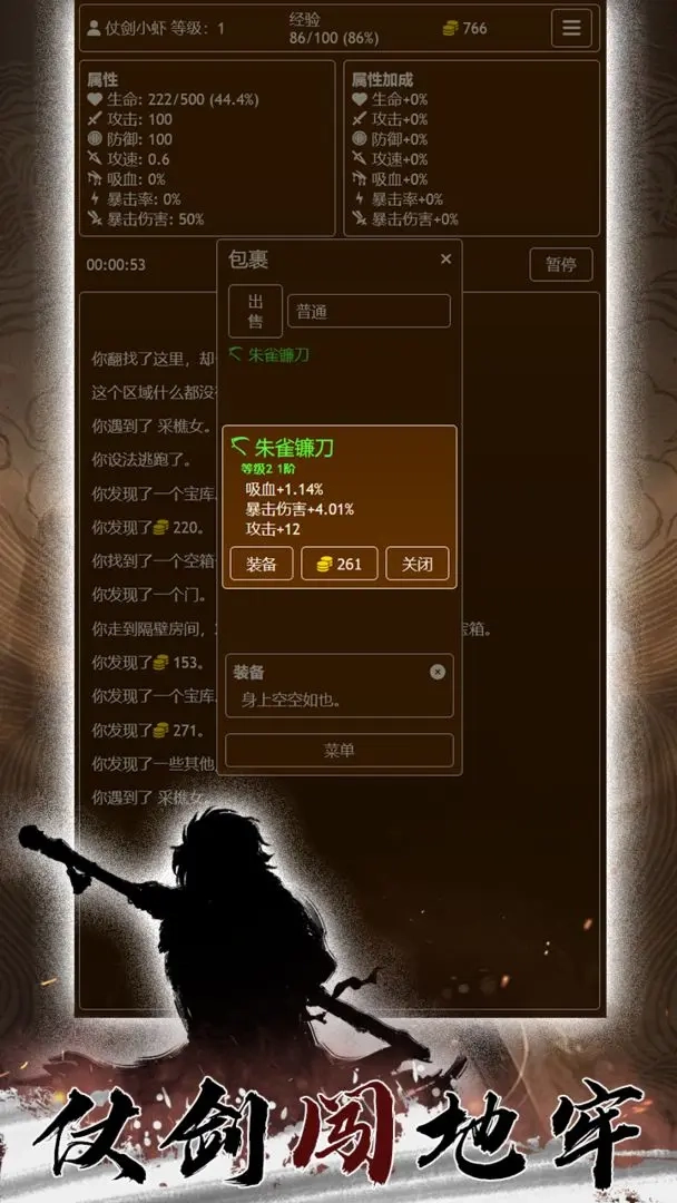 游戏启程前,挑选一个符合你战斗风格的角色至关重要。每个角色都拥有独到的技能与属性,影响后续的战斗与成长。游戏界面分为上下两部分,上半部展示角色属性与装备,下半部则以文字形式呈现闯关进程。熟悉界面,方能游刃有余。