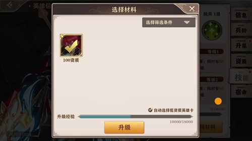 英雄能够借助消耗经验书来提升等级,等级越高,其拥有的属性也就越强。