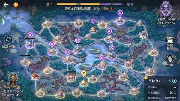 据点一开始是被魂兽占据的,玩家得从和己方主城或据点相连的据点着手发起进攻,成功攻下来之后就能安排驻守。 资源点能够产出粮草这类资源,而发起进攻的话是会消耗粮草的。