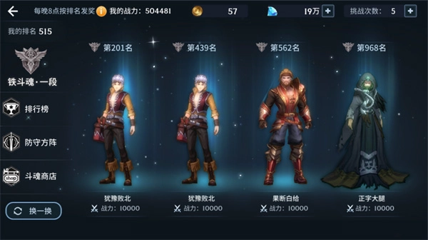 二、大斗魂场 在大斗魂场里,玩家能够向其他玩家发起挑战,展开5v5的对战较量,取得胜利的玩家将得到排名的提升。