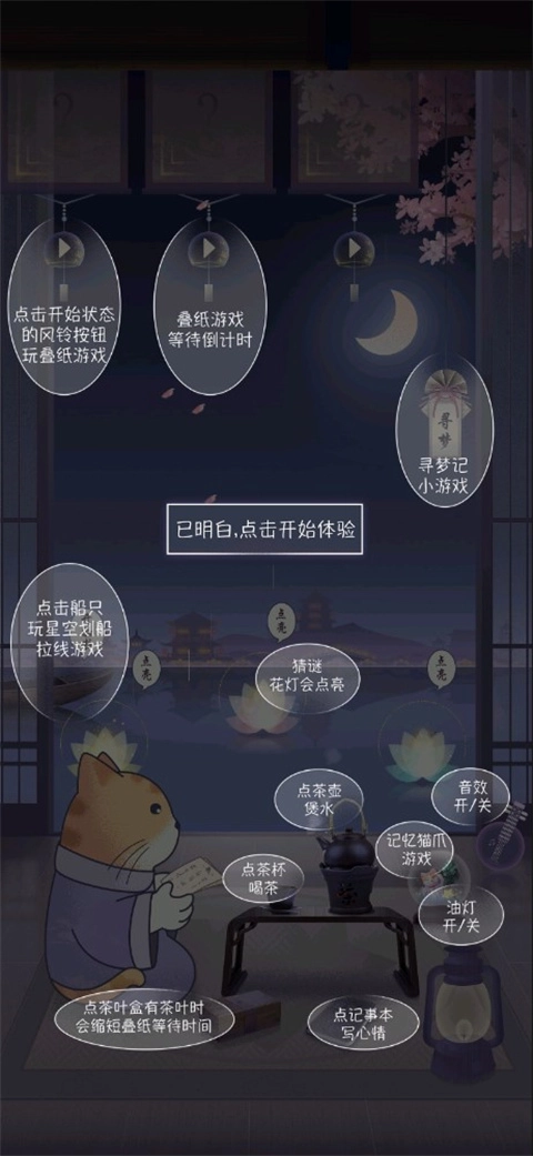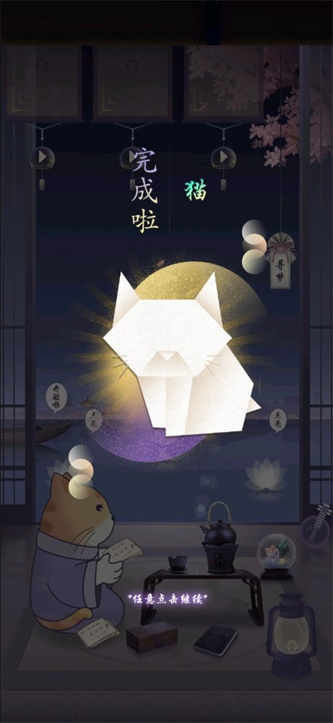 点击游戏界面顶部的风铃就能进行折纸,完成折纸后还能得到茶包呢;