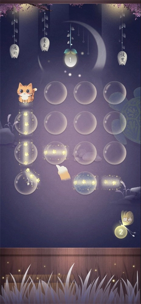 进入寻梦游戏后,玩家需要拖动水珠连成一条通路,帮助小猫顺利通过。