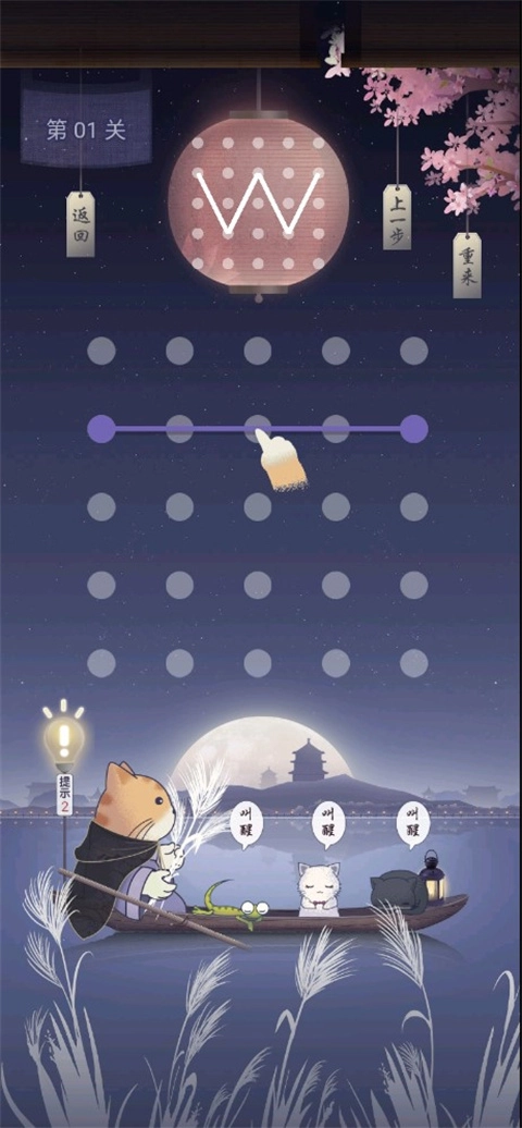 在湖岸的边缘处有一个船头,上面写着“点亮”,点击它就能触发另一个小游戏的入口,这个入口对应的是<图案连线>小游戏。
