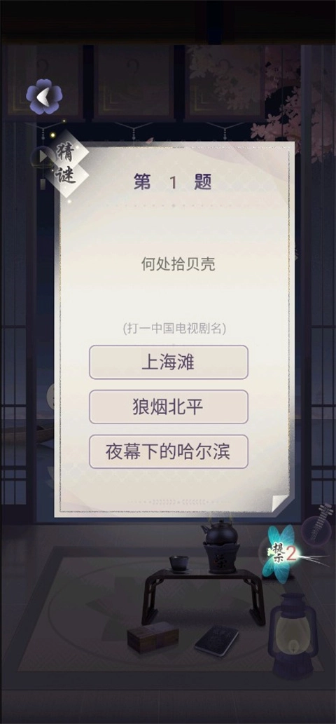 点击湖面上的莲花就能开启猜谜游戏,要是猜不出来,还能点击右下角的“提示”按钮获取帮助哦。