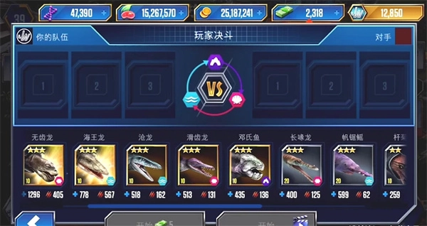 游戏里水生物种是主要战斗力,涵盖的种类相当丰富。我们可以把它们明确划分为水生恐龙和水生生物两大类,就目前来看,游戏里水生恐龙的数量比水生生物多不少。先说说稀有度最高的水生恐龙:无齿龙、海王龙和沧龙,这三种不仅是稀有度顶尖的,战斗能力在水生恐龙里也是最强的,获取它们的难度自然也比较大,玩家得完成特定关卡才有机会得到这三种恐龙。