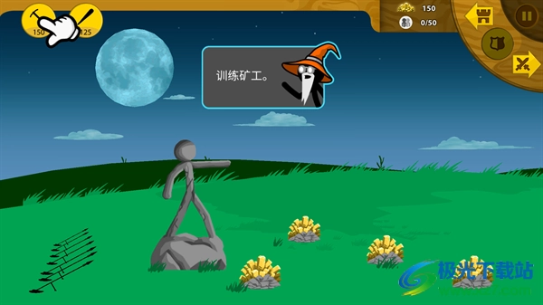1、平时操作矿工挖矿,战时操作部队打仗,矛兵弓箭万金油,前期灵活运用防守姿态;