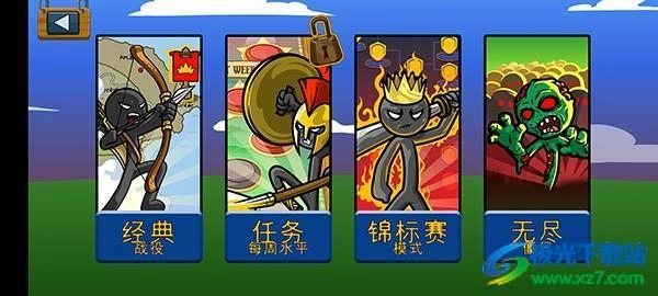 火柴人战争遗产最新版是一款以火柴人为主要角色的战争类策略游戏。在游戏中扮演一个名叫“OrderEmpire”的国家的领袖,需要指挥各种火柴人士兵作战,组建自己的火柴人队伍,并尝试控制它们执行战术。目标是在Inamorta这个世界中,通过军事行动来抵御周围国家的入侵,并获取技术。游戏游戏四个模式可以体验经典、每周任务、锦标赛、无尽僵尸,每个模式中都会有不同的关卡可以选择,想要轻松获胜的话还可以通过战斗获取宝石来购买特殊能力。