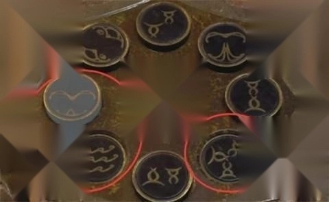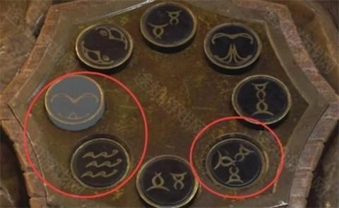 2、第二个密码锁在湖泊处,有两个,一个在右上角的祭坛,另外一个在山洞中,解锁方式如下。