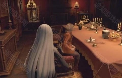 5、第五个密码锁是餐厅解锁,在桌子的对面有副画,根据画上的信息按铃铛即可。
