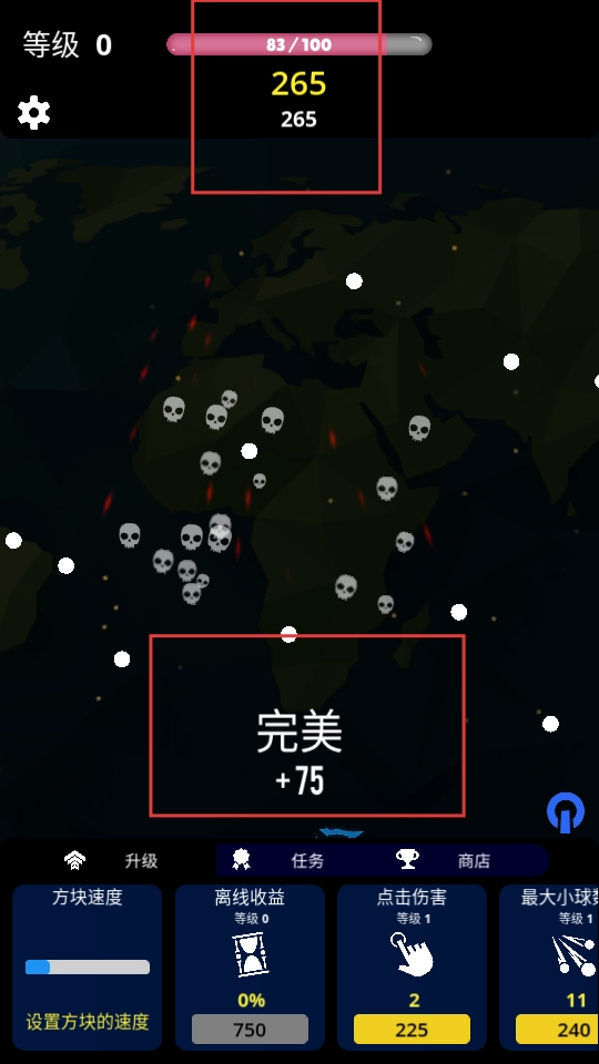 借助下方的升级栏,消耗相应资源来提升方块移动速度、点击造成的伤害等各项属性,以此让方块消除操作更具效率,助力关卡的推进。