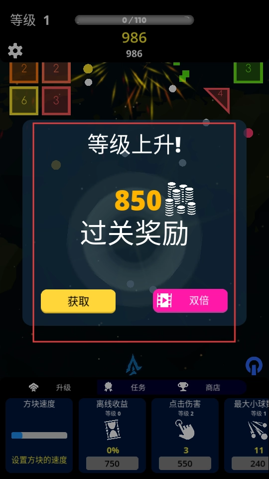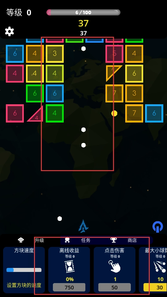 你需要操控小球去撞击那些彩色的方块,通过消除方块来积累进度,这样就能提升等级。等等级上升之后,就可以领取过关奖励,这些奖励能用来强化小球的能力。