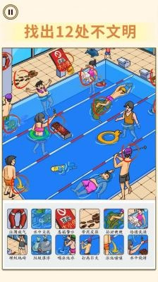 《找出不文明》是一款让人玩起来就停不下来的游戏,玩家能在搜寻和改正不文明行为的过程里收获快乐与成就感。游戏借助设计丰富多元的关卡、充满挑战的任务,以及吸引人沉浸其中的玩法机制,把道德层面的引导和轻松的娱乐体验融合在一起,让大家在玩游戏时自然而然地成为社会现象的关注者和积极改变的参与者。不如来试试这款游戏,和大家一起找出那些不文明的行为,为打造更和谐美好的社会出一份力。