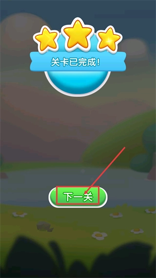 4、达成关卡目标后显示【关卡已完成!】,点击【下一关】按钮即可进入新关卡,继续推进游戏进度。