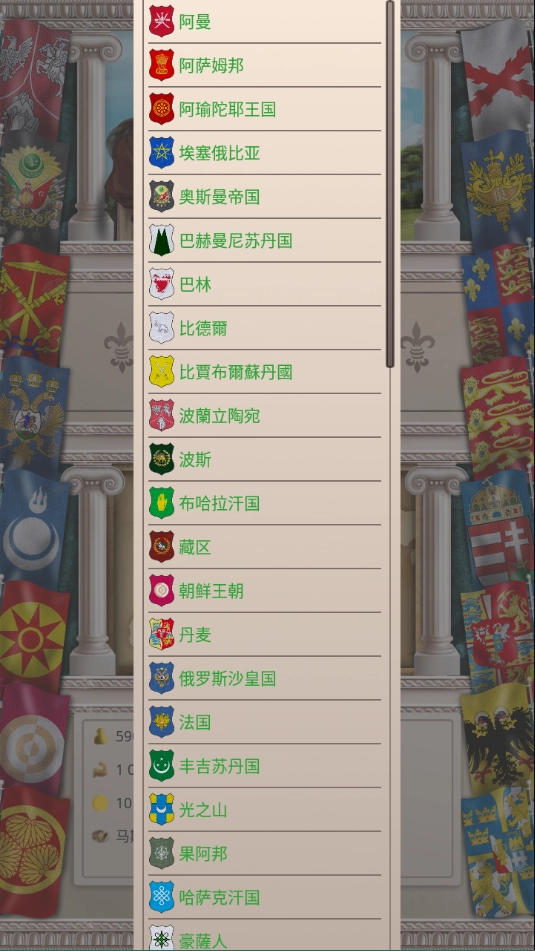 首先打开殖民时代的最新版本,挑选一个你想要统治的国家,然后点击“开始”按钮就能进入游戏了。