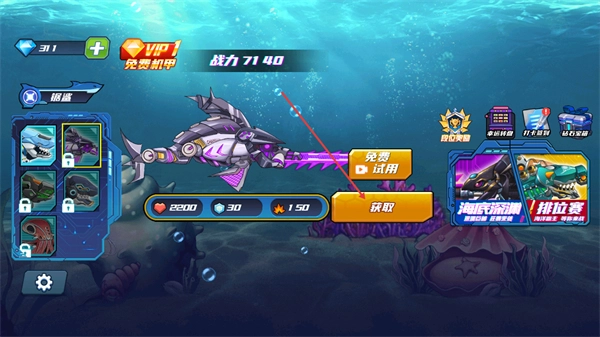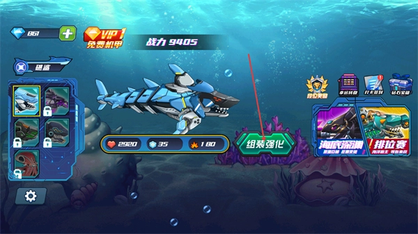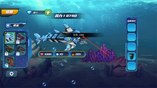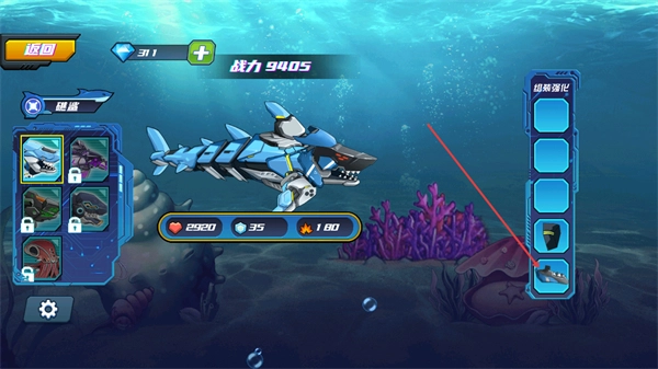 通过设置丰富多样的任务与挑战,玩家完成后能获得丰厚奖励,这些奖励可直接用于机械鲨鱼的升级改造,从而构建起“完成任务—获取奖励—提升实力”的良性循环。
